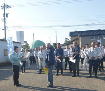 当日は社員と地域住民、約5000人が参加。工場近くの道路や駐車場、あいの風とやま鉄道黒部駅と生地駅、JR黒部宇奈月温泉駅周辺などを清掃しました。50回の節目として、社員の地域環境を守る意識を新たにし更なる活動へつなげるため、のぼり旗を新調しました。また地域の方へ感謝を伝える会を開催し、感謝状を贈りました。今後も清掃活動を通じ、環境保全と地域の活性化に貢献していきます。